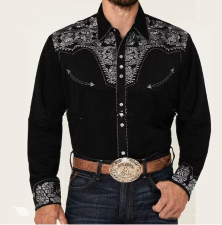 Retro Cardigan Lapel Men's Casual Printed Shirt